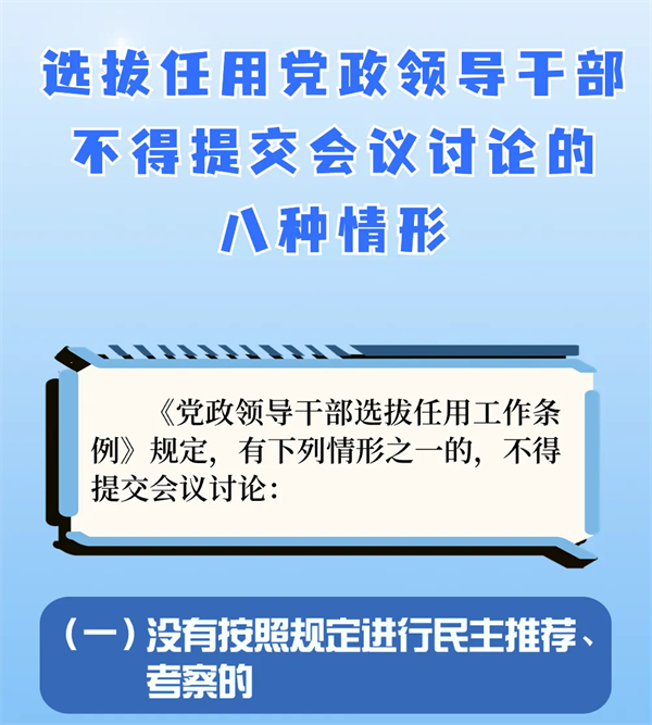 选拔任用党政领导干部,不得提交会议讨论的八种情形