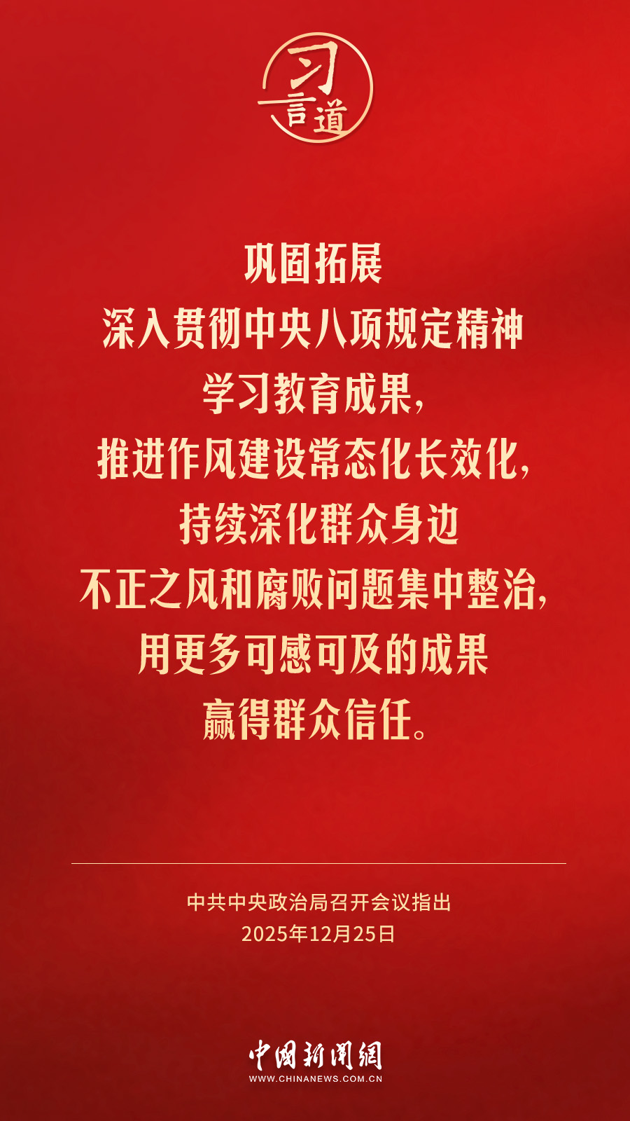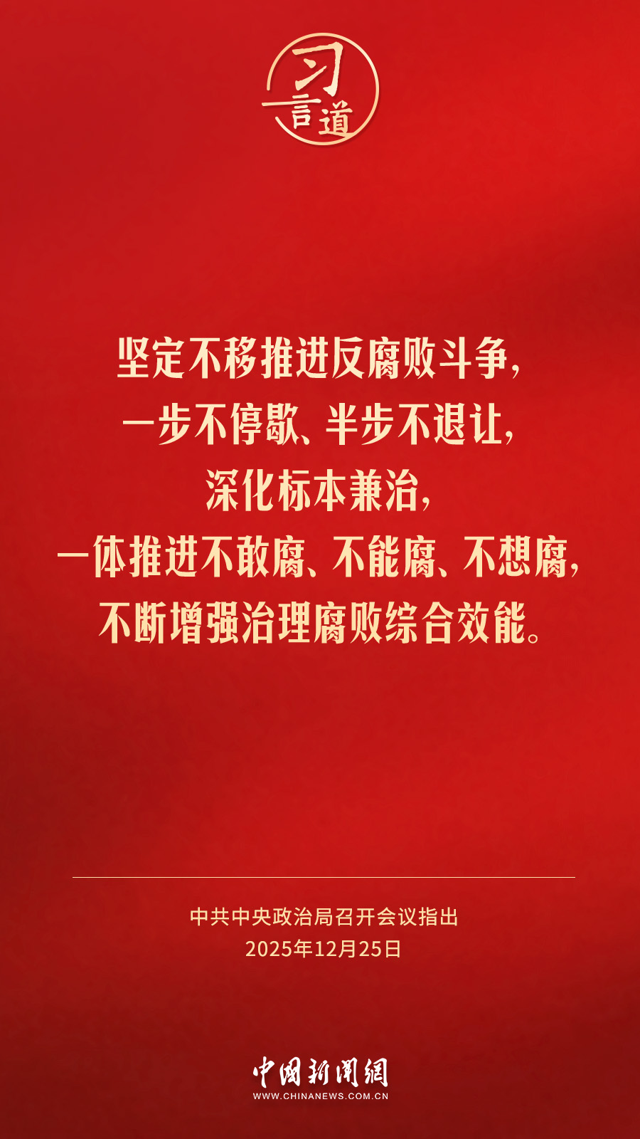中共中央政治局12月25日召开会议,听取中央纪委国家监委工作汇报,研究部署2026年党风廉政建设和反腐败工作。中共中央总书记习近平主持会议。会议强调——