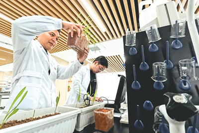 在土壤健康徐明岗院士工作站中试车间,技术人员正在进行测试(资料图片)。