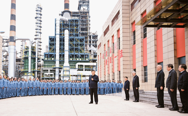 2023年10月10日至13日,中共中央总书记、国家主席、中央军委主席习近平在江西考察。这是10日下午,习近平在中国石化九江分公司考察时,同企业员工亲切交流。 新华社记者 谢环驰/摄