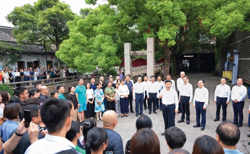 7月5日至7日,中共中央总书记、国家主席、中央军委主席习近平在江苏考察。这是6日上午,习近平在苏州平江历史文化街区,同当地居民和游客亲切交流。 燕雁摄