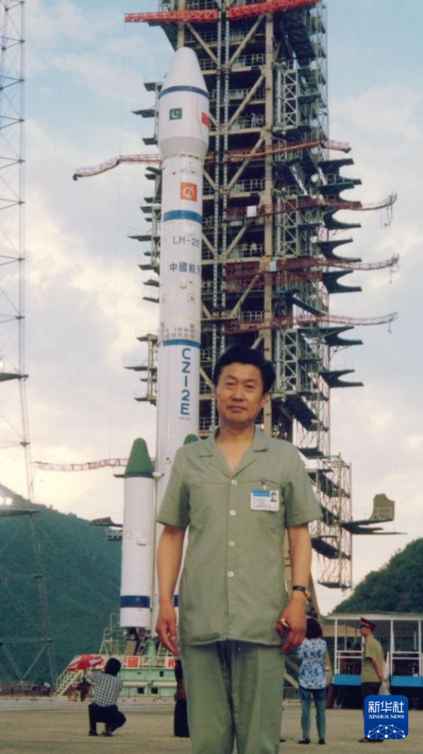 王永志在长征二号捆绑式运载火箭发射前留影。(资料照片)