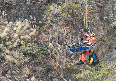 陈蓉进行山岳救援训练。