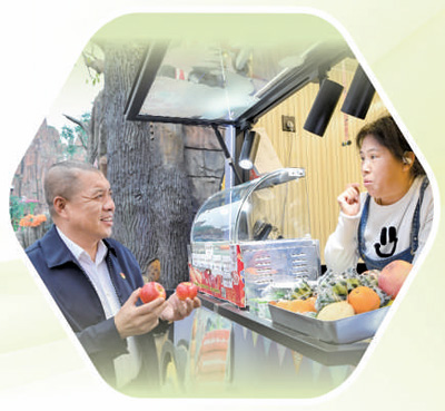 图为李恒彪(左)向景区入驻商户了解经营中遇到的难题。