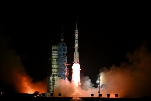 2024年10月30日,搭载神舟十九号载人飞船的长征二号F遥十九运载火箭在酒泉卫星发射中心点火发射。新华社记者李鑫摄