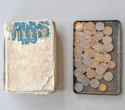 吴光潮翻阅了几十年的《农村医生手册》和收取诊疗费的铁皮盒。
