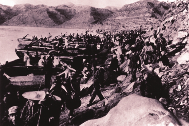 为了早日开赴抗日战场,八路军尚未改编就绪,即按照中共中央和中央革命军事委员会的部署,相继誓师出征。图为1937年8月,八路军东渡黄河场景。