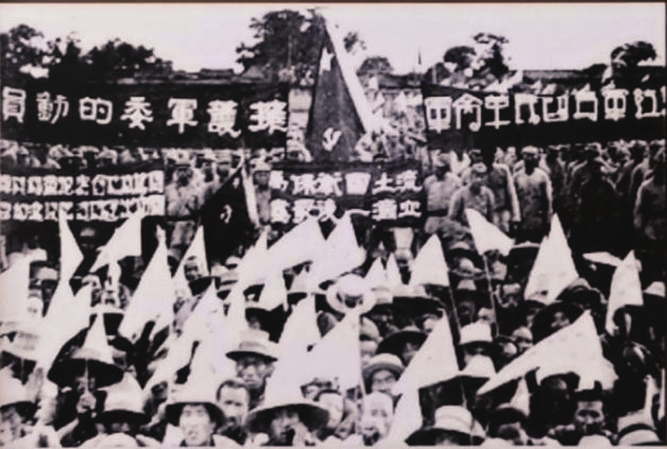 1937年8月22日,经过国共两党谈判,双方达成协议。25日,中共中央革命军事委员会根据南京国民政府军事委员会发布的正式命令,决定将陕甘宁边区的中国工农红军主力改编为国民革命军第八路军(同年9月,改称国民革命军第十八集团军),将红军前敌总指挥部改为第八路军总指挥部,任命朱德为总指挥(后称总司令),彭德怀为副总指挥(后称副总司令),叶剑英为参谋长,左权为副参谋长,任弼时为政治部主任,邓小平为副主任。图为红军召开改编誓师大会。