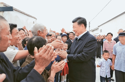 2019年8月19日至22日,中共中央总书记、国家主席、中央军委主席习近平在甘肃考察。这是21日上午,习近平在武威市古浪县黄花滩生态移民区富民新村同村民亲切交谈。 新华社记者 鞠鹏/摄