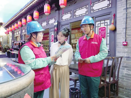 图②为国网晋中供电公司“两队”队员向平遥古城商户普及用电安全知识。高天辉摄