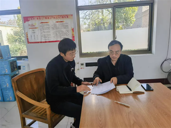 ▲榆次区东阳镇干部与西范村党员代表谈话了解村党组织带头人工作履职情况。