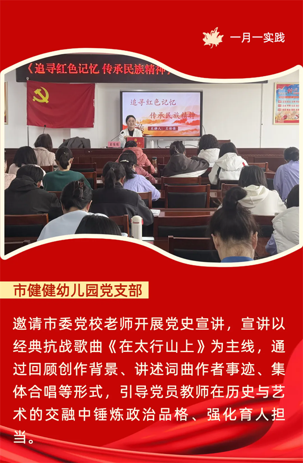 每月月初,展示上月“一月一实践”主题党日成果供基层党支部学习借鉴。