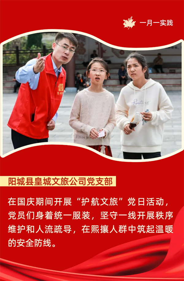 围绕国庆文旅康养活动高峰,全市356个基层党组织组织党员在景区入口、交通枢纽、游客中心等重点区域开展交通疏导、路线指引、咨询解答、应急帮扶等服务,为游客营造安全舒心的旅游环境,助力文旅产业高质量发展。