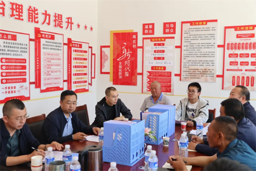 ▲滋润乡班子成员带领陈庄村后备力量参加信访矛盾化解专题会议。