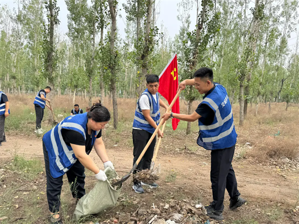 ▲县城镇供水公司党支部组织开展“水源守护践初心”主题党日活动,青年党员服务队前往水源地开展卫生大清理活动,以实际行动为群众安全用水保驾护航