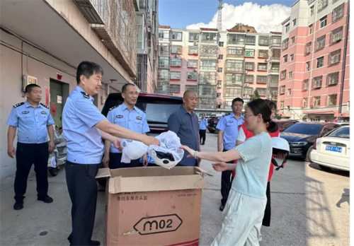 ▲交警队支部党员下沉元头湾社区开展交通安全宣传,免费发放安全头盔。