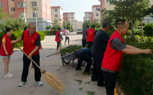 ▲农业农村和水利局组织党员到幸福社区报到服务,人人动手助力社区优化居住环境。