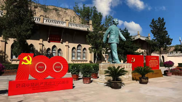 △杨家沟革命旧址的毛泽东雕像,大步向前,气势昂扬。(总台央视记者韩锐拍摄)