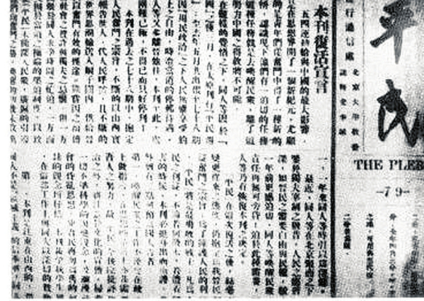 省立一中进步青年王振翼等在高君宇的帮助下创办并主编的《平民》周刊。