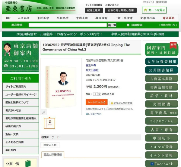 近日,《习近平谈治国理政》第三卷中英文版在日本、马来西亚、新加坡、泰国、印度尼西亚等周边国家主流书店和华文书店陆续上架销售。日本东方书店、内山书店、亚东书店、燎原书店,新加坡友谊书斋、友联书局,马来西亚大众书局、文轩书苑,泰国南美书店,缅甸曼德勒华文书局等多国书店均在显著位置摆放了《习近平谈治国理政》第三卷中英文版。