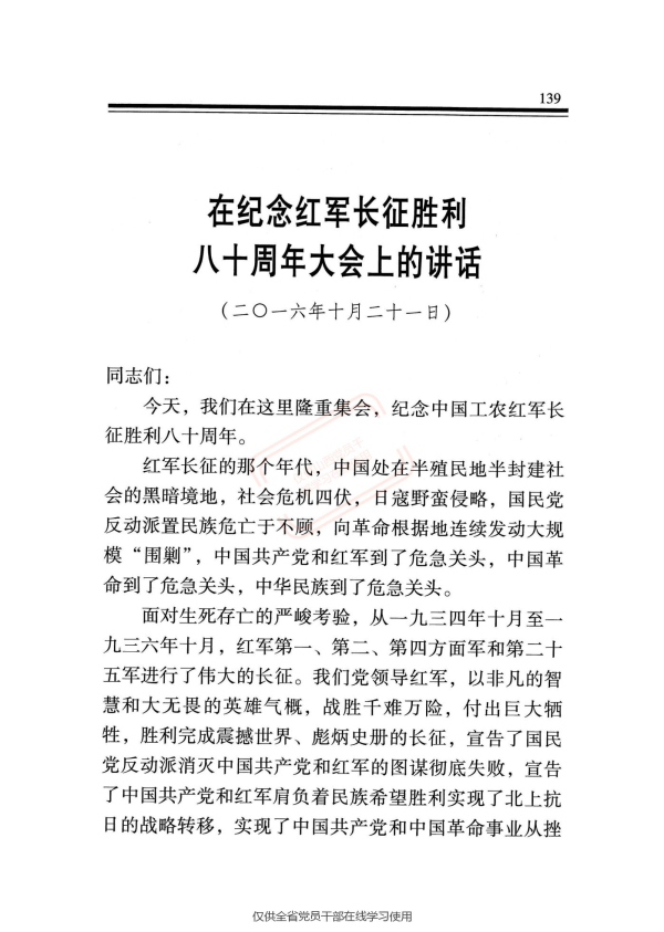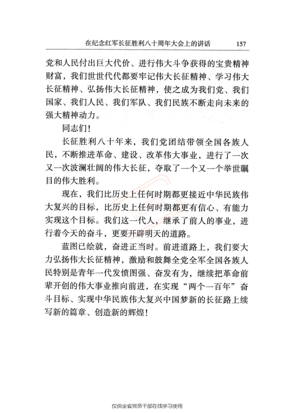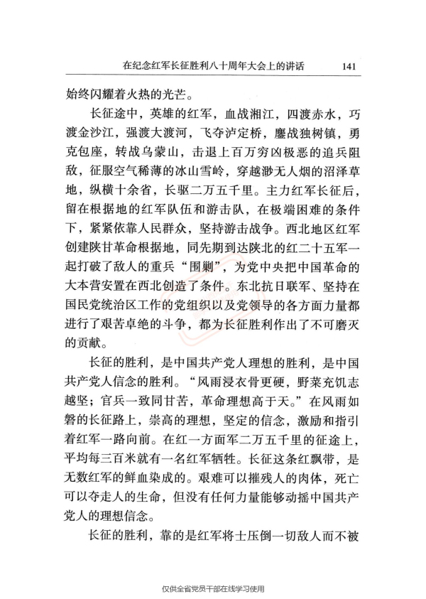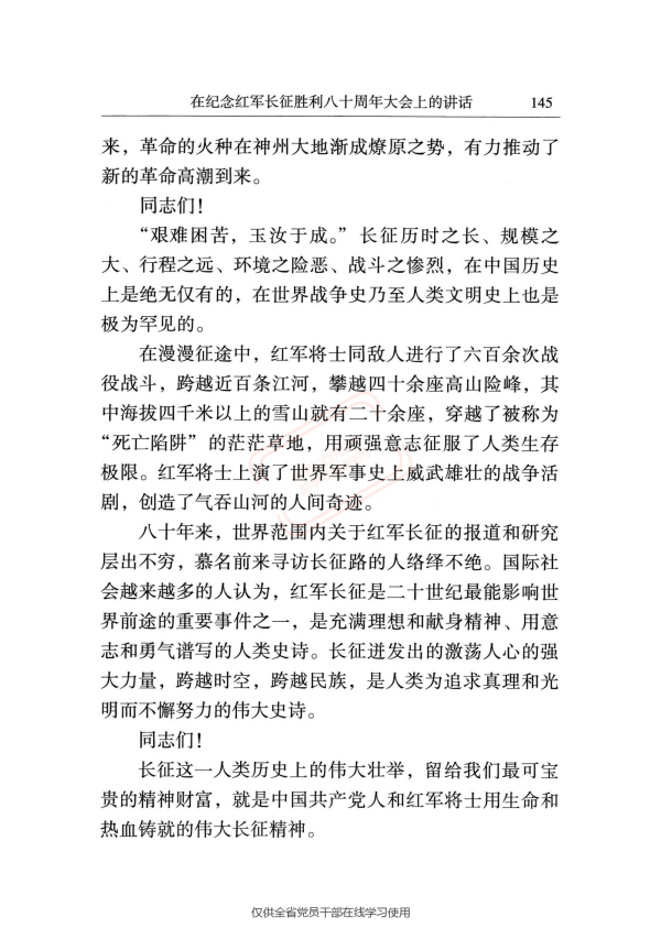 在纪念红军长征胜利八十周年大会上的讲话
