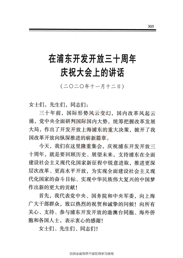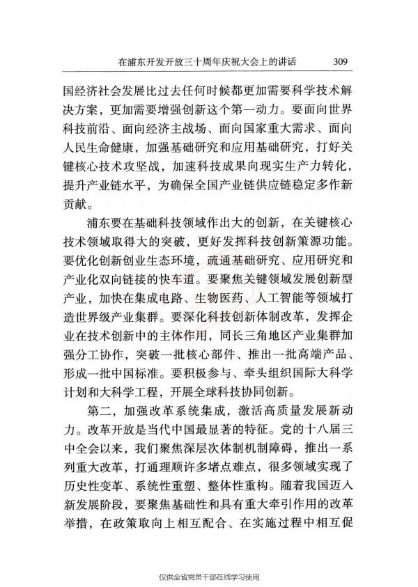 在浦东开发开放三十周年庆祝大会上的讲话