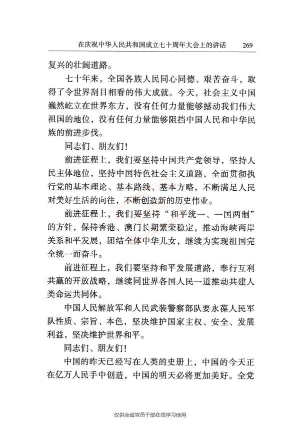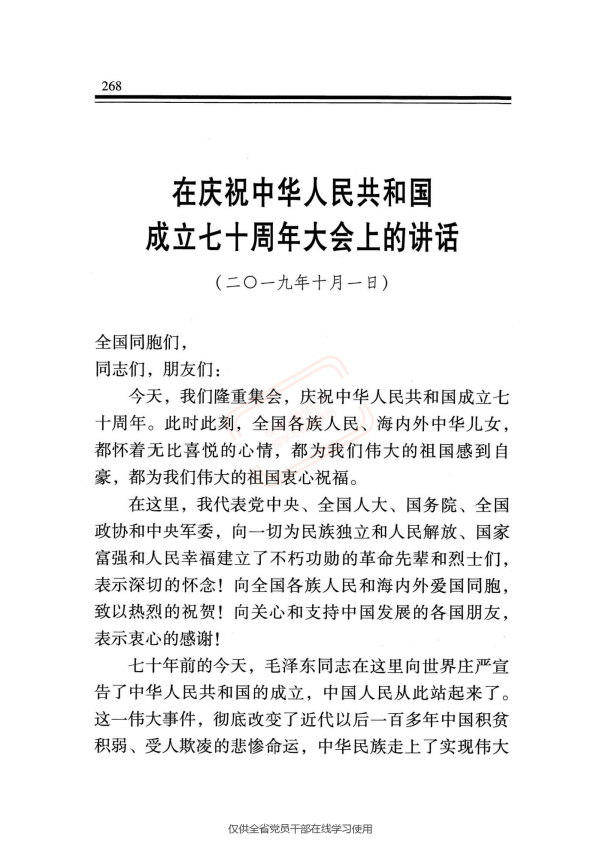 在庆祝中华人民共和国成立七十周年大会上的讲话