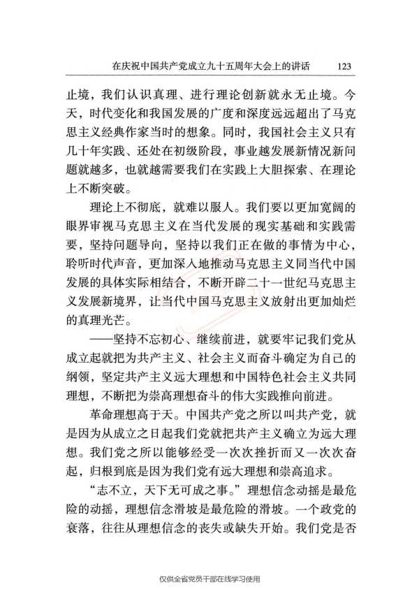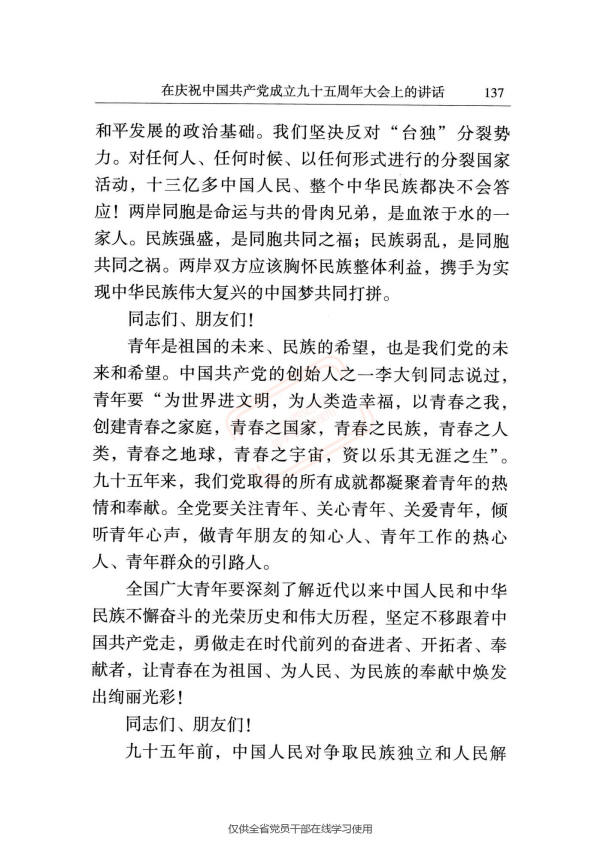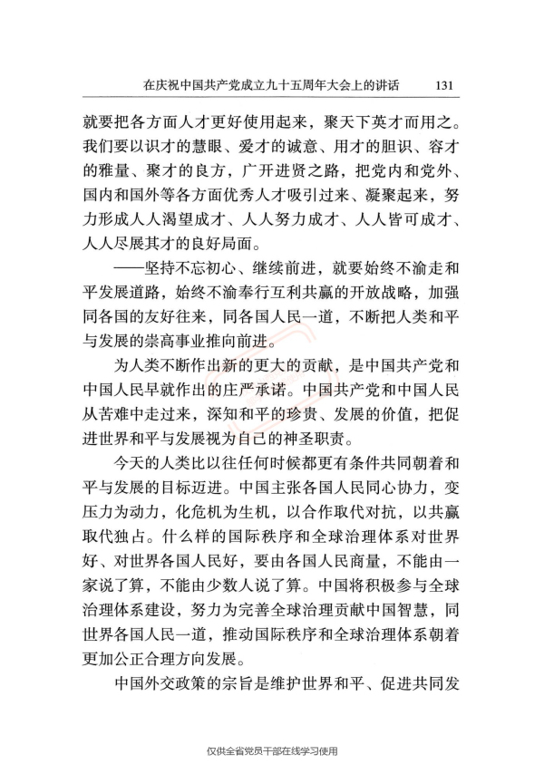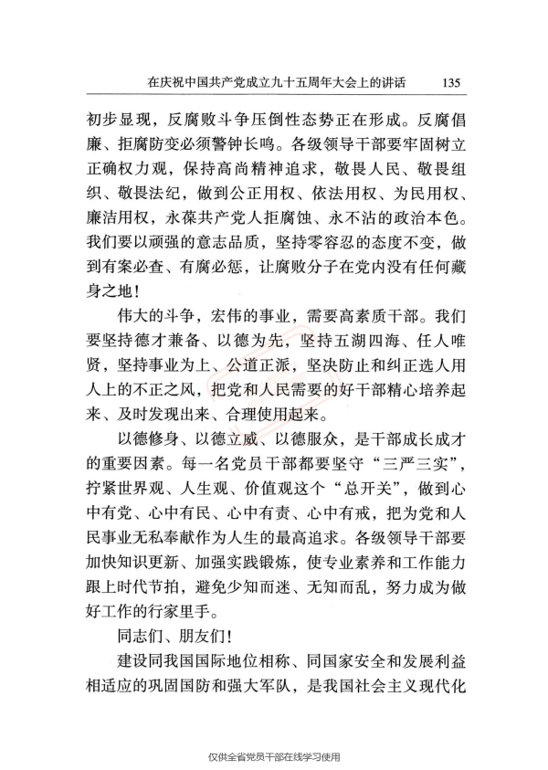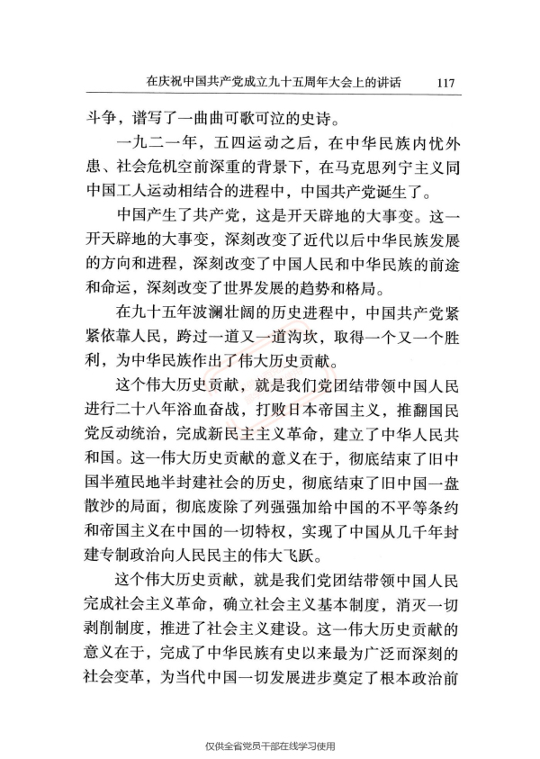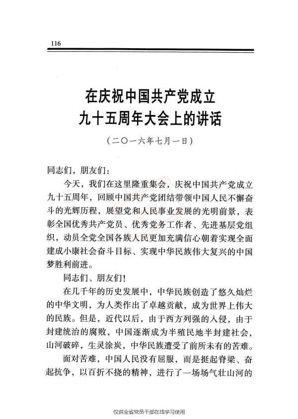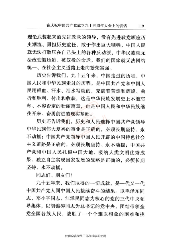 在庆祝中国共产党成立九十五周年大会上的讲话