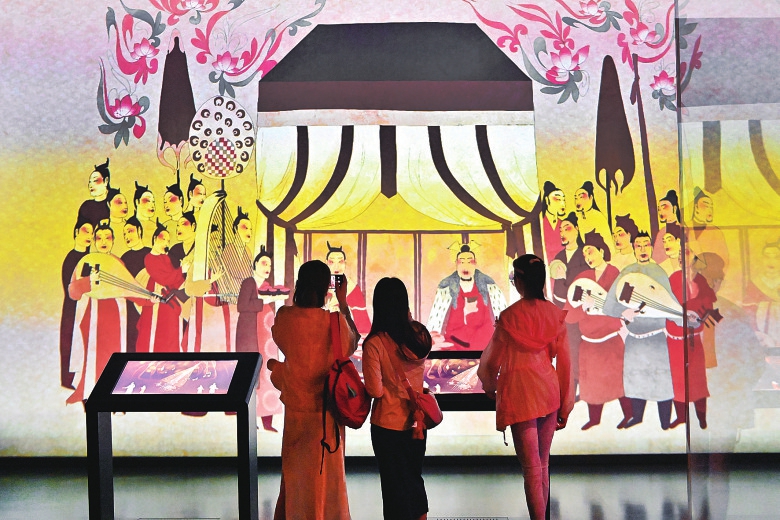 太原北齐壁画博物馆,游客驻足凝视壁画细节。范文静摄