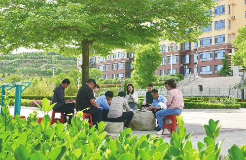 和顺县工作人员向易地搬迁小区居民发放移风易俗宣传品及资料。