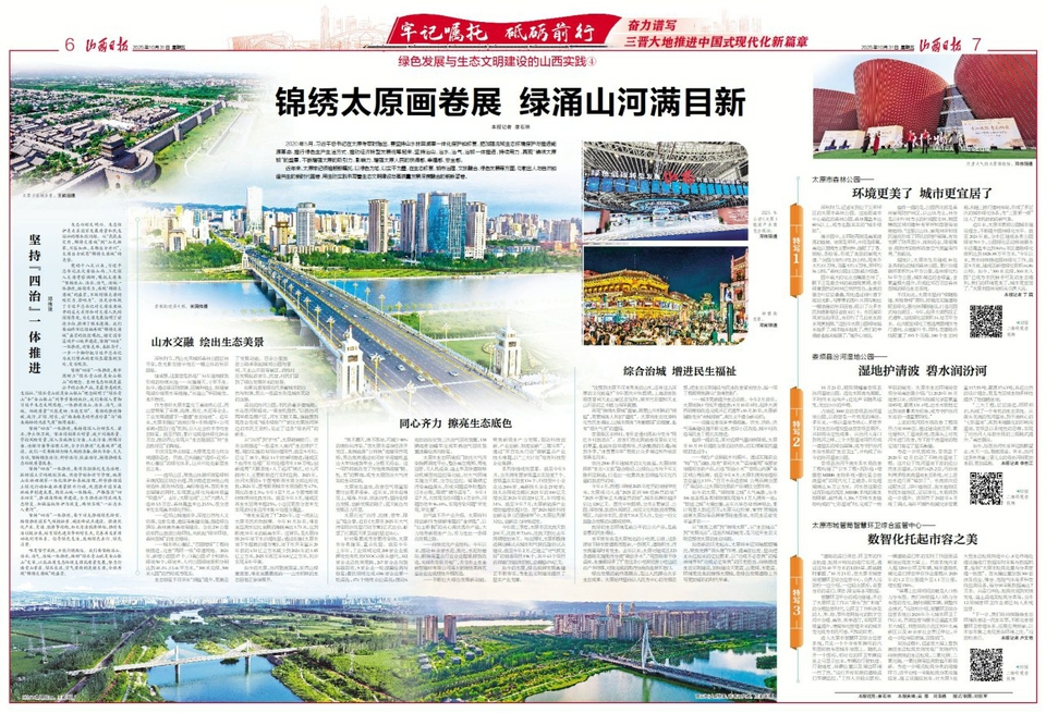 近年来,太原牢记领袖殷殷嘱托,以绿色为笔、以实干为墨,在生态修复、城市治理、文旅融合、绿色发展等方面,勾勒出人与自然和谐共生的新时代画卷,用生动实践书写着生态文明建设与高质量发展深度融合的崭新答卷。